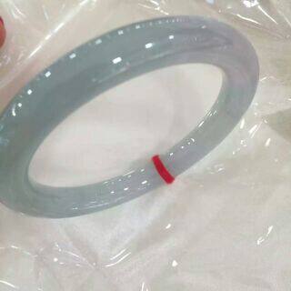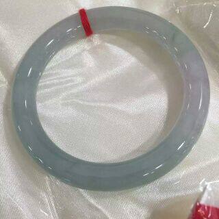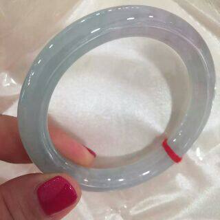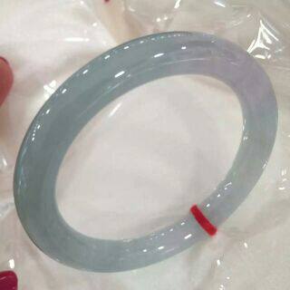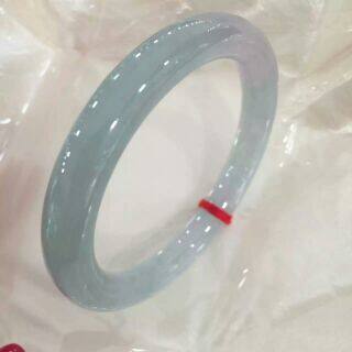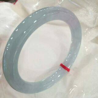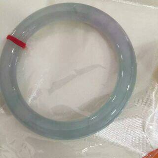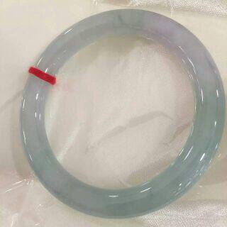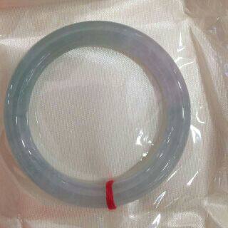 昕玉轩 天然翡翠a货淡绿色紫罗兰色双彩冰种园条福镯玉镯手镯 52