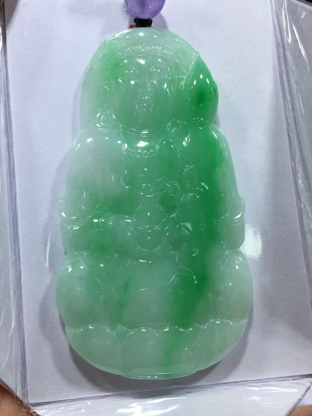 昕玉軒老翠祥梵宸銘鈺 天然翡翠精美正阳绿色南无大慈大悲观世音佛菩萨玉佩吊坠花件 No.172089990
